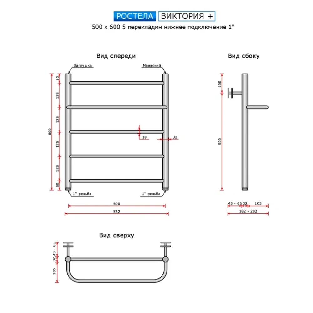 Полотенцесушитель водяной Ростела Виктория+ 500x600/5 1" нижнее подключение