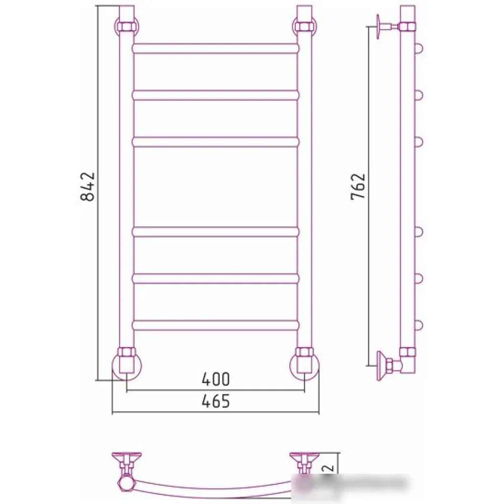водяной, "лесенка", нержавеющая сталь, подключение нижнее/диагональное/боковое, 84.2x46.5 см, цвет: хром