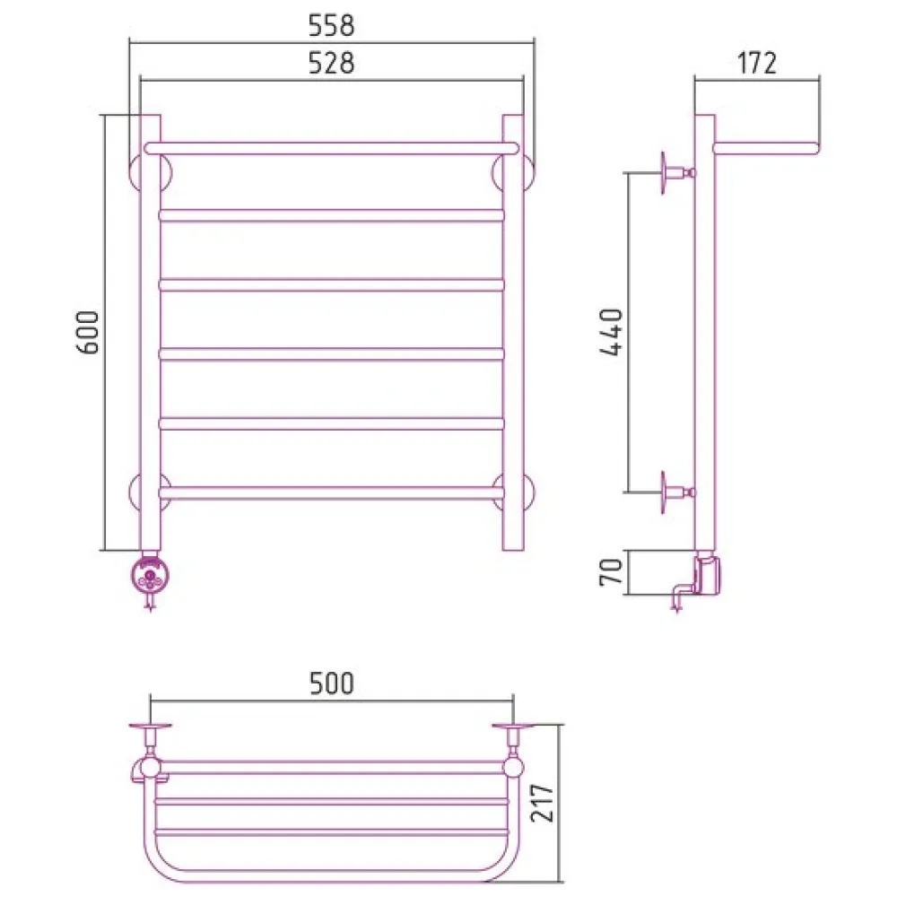 Полотенцесушитель Стилье Формат 20 ТЛ 600х500 (Полка + 5) П16 00521-6050