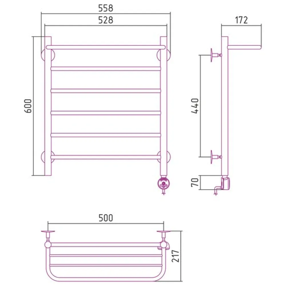 Полотенцесушитель Стилье Формат 20 ТП 600х500 (Полка + 5) П16 00520-6050