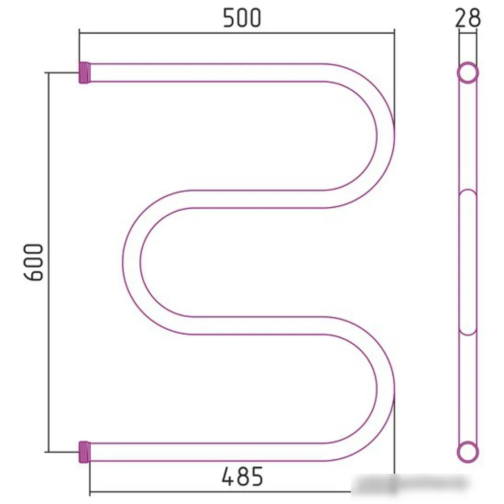 Полотенцесушитель Стилье М-образный 600х500 резьба-сгон 1" 00004-6050