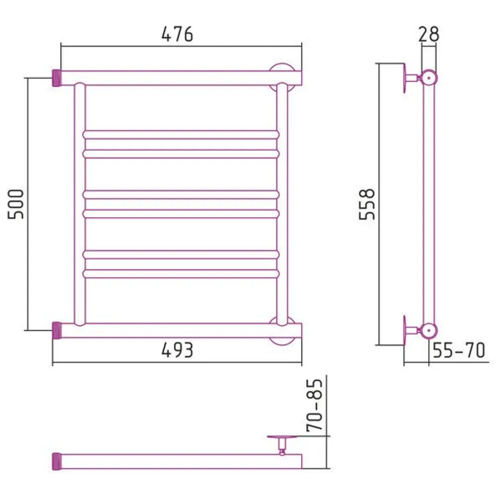 Полотенцесушитель Стилье Минор 0601 500х500 (2+2+2) П 00601-5050