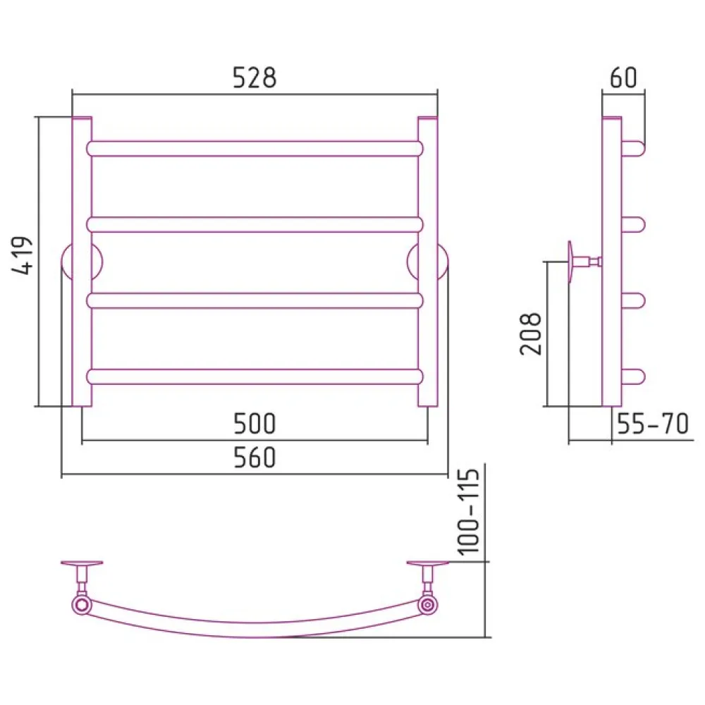 Полотенцесушитель Стилье Универсал-50 500х500 (4) Г 21 00650-5050