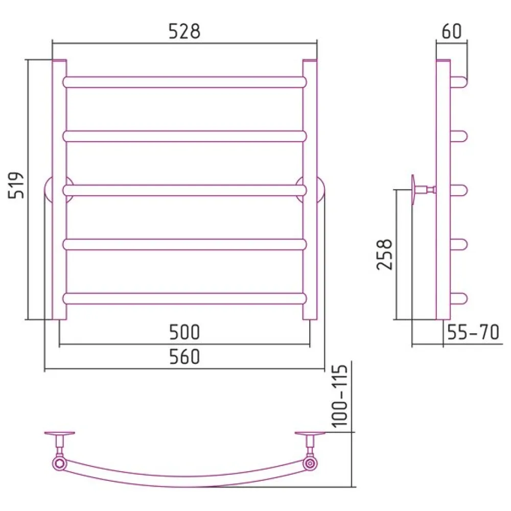 Полотенцесушитель Стилье Универсал-50 600х500 (5) Г 21 00650-6050