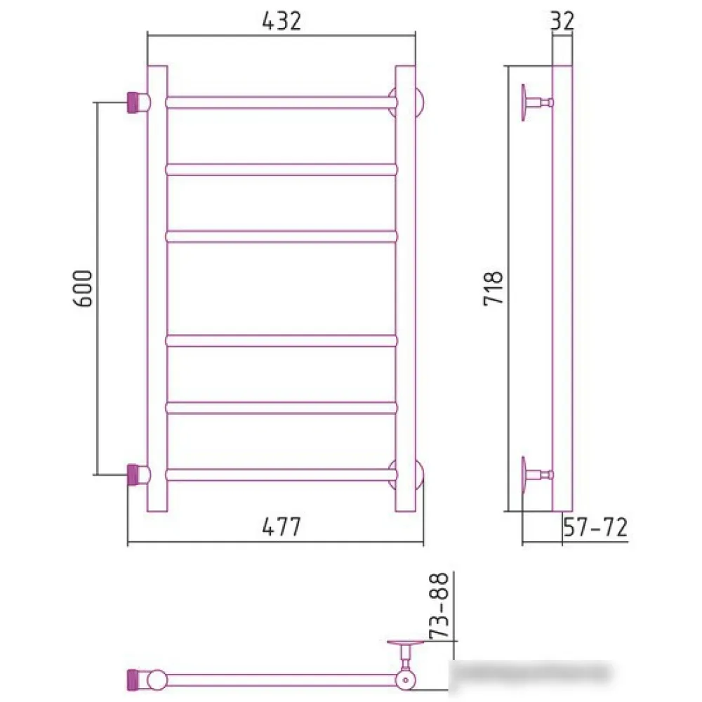 | Комплектация | Полотенцесушитель - 1 шт. Кронштейн телескопический - 1 к-т Воздушный клапан - 2 шт. Паспорт - 1 шт. Полотенцесушитель упакован в полиэтиленовый пакет и коробку из гофрокартона. Для подключения потребуется: два соединительных элемента угловых/прямых. |