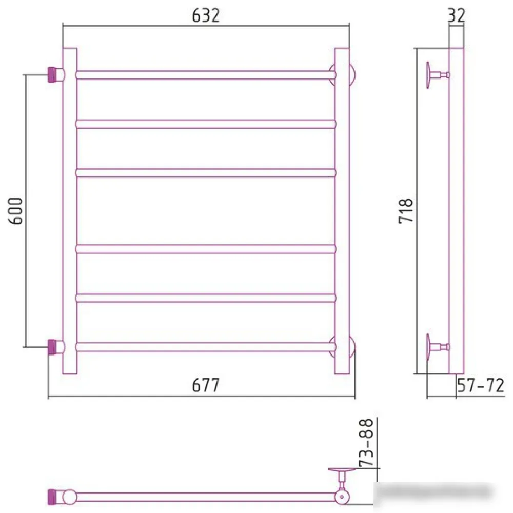 водяной, "лесенка", нержавеющая сталь, подключение боковое (600 мм, 1"), 71.8x67.7 см, цвет: хром