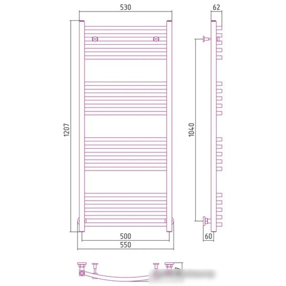 Тип: водяной , Форма: лесенка , Материал: нержавеющая сталь , Подключение: нижнее, боковое, диагональное , Посадочное (межосевое) расстояние: 500 мм, Посадочный диаметр: 3/4, 1/2 ", Высота: 120.7 см, Ширина: 55 см, Цвет: золотистый , Количество ребер: 20 шт.