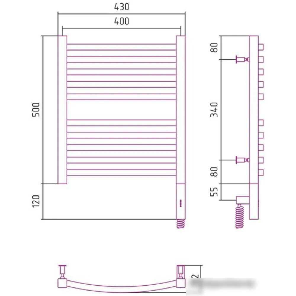 Полотенцесушитель Сунержа Аркус 3.0 500х400 МЭМ правый 00-5705-5040