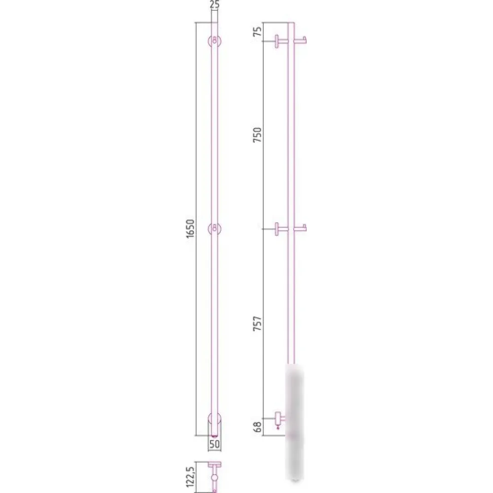 электрический, вертикальный, нержавеющая сталь, 165x5 см, цвет: полированная сталь