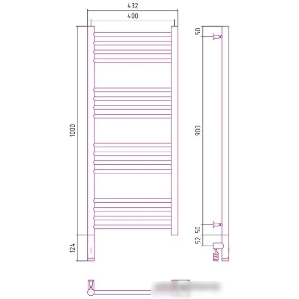 Полотенцесушитель Сунержа Богема 3.0 прямая 1000х400 МЭМ левый 30-5804-1040