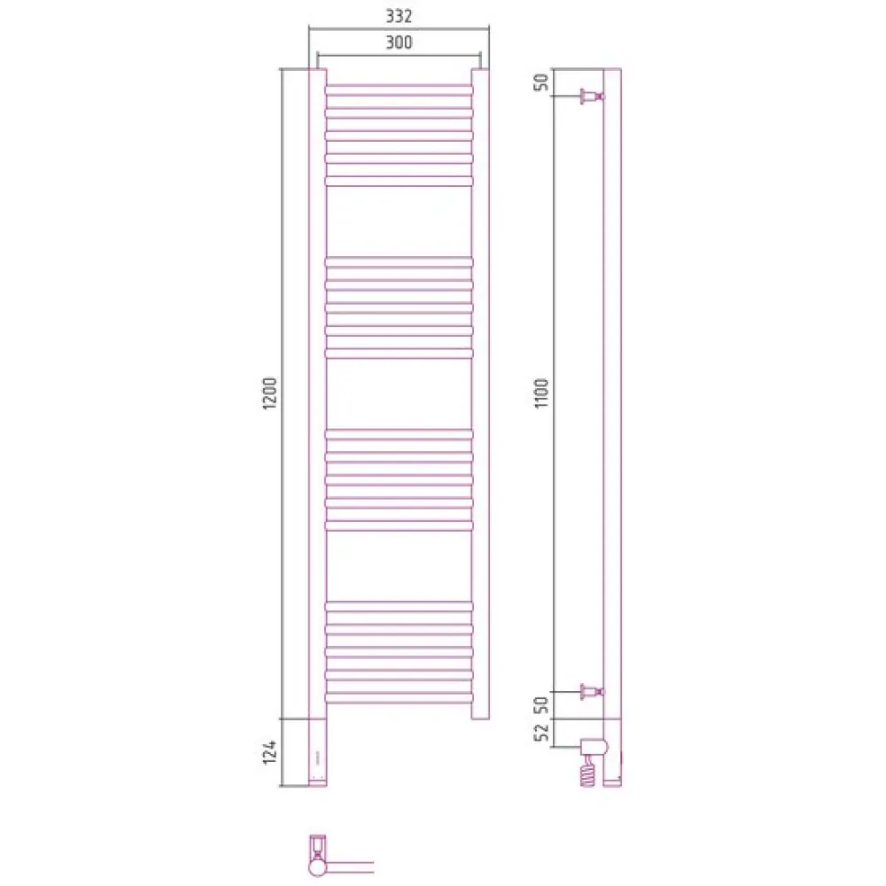 Полотенцесушитель Сунержа Богема 3.0 прямая 1200х300 МЭМ левый 30-5804-1230