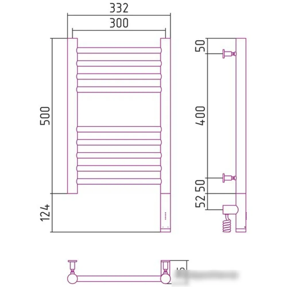 Полотенцесушитель Сунержа Богема 3.0 прямая 500х300 МЭМ правый 15-5805-5030