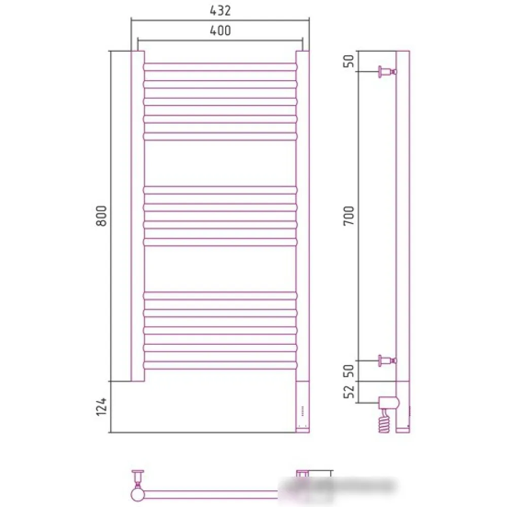 Полотенцесушитель Сунержа Богема 3.0 прямая 800х400 МЭМ правый 31-5805-8040
