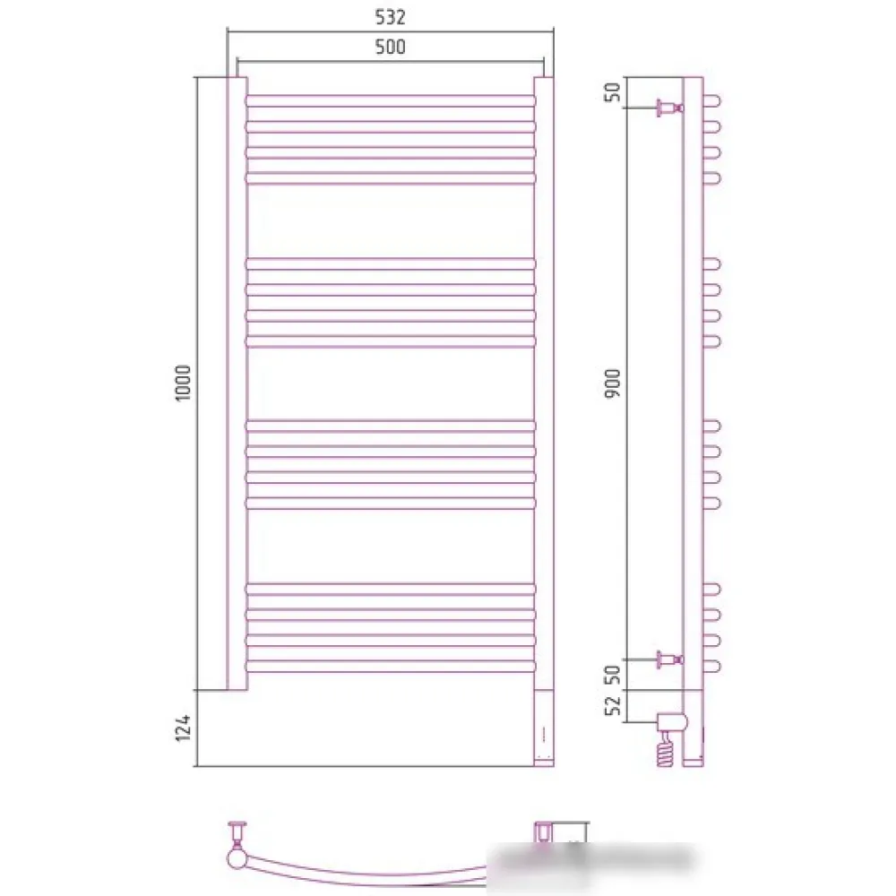 Полотенцесушитель Сунержа Богема 3.0 выгнутая 1000х500 МЭМ правый 30-5803-1050