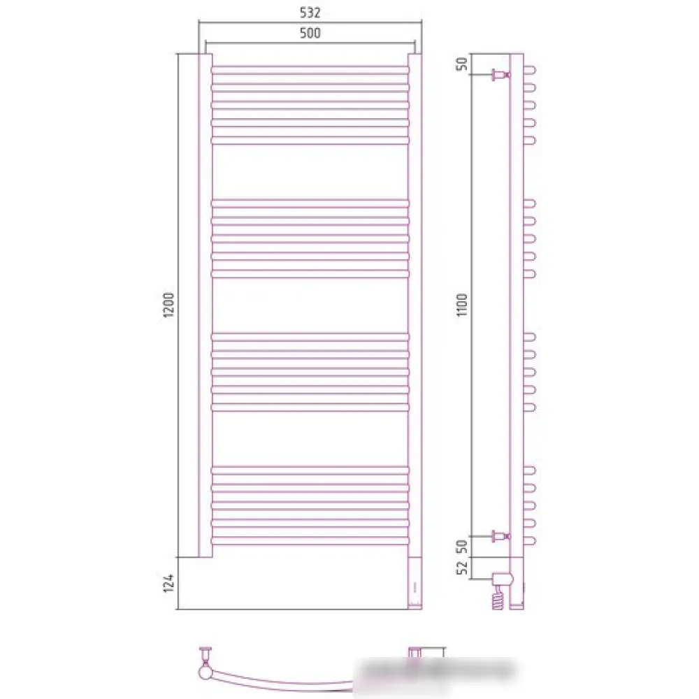 Полотенцесушитель Сунержа Богема 3.0 выгнутая 1200х500 МЭМ правый 31-5803-1250