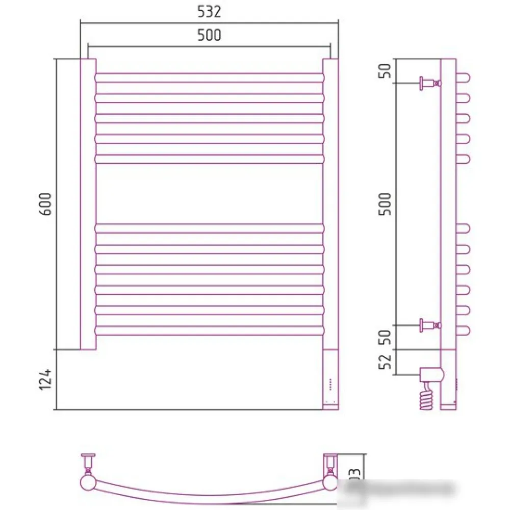 Полотенцесушитель Сунержа Богема 3.0 выгнутая 600х500 МЭМ правый 051-5803-6050