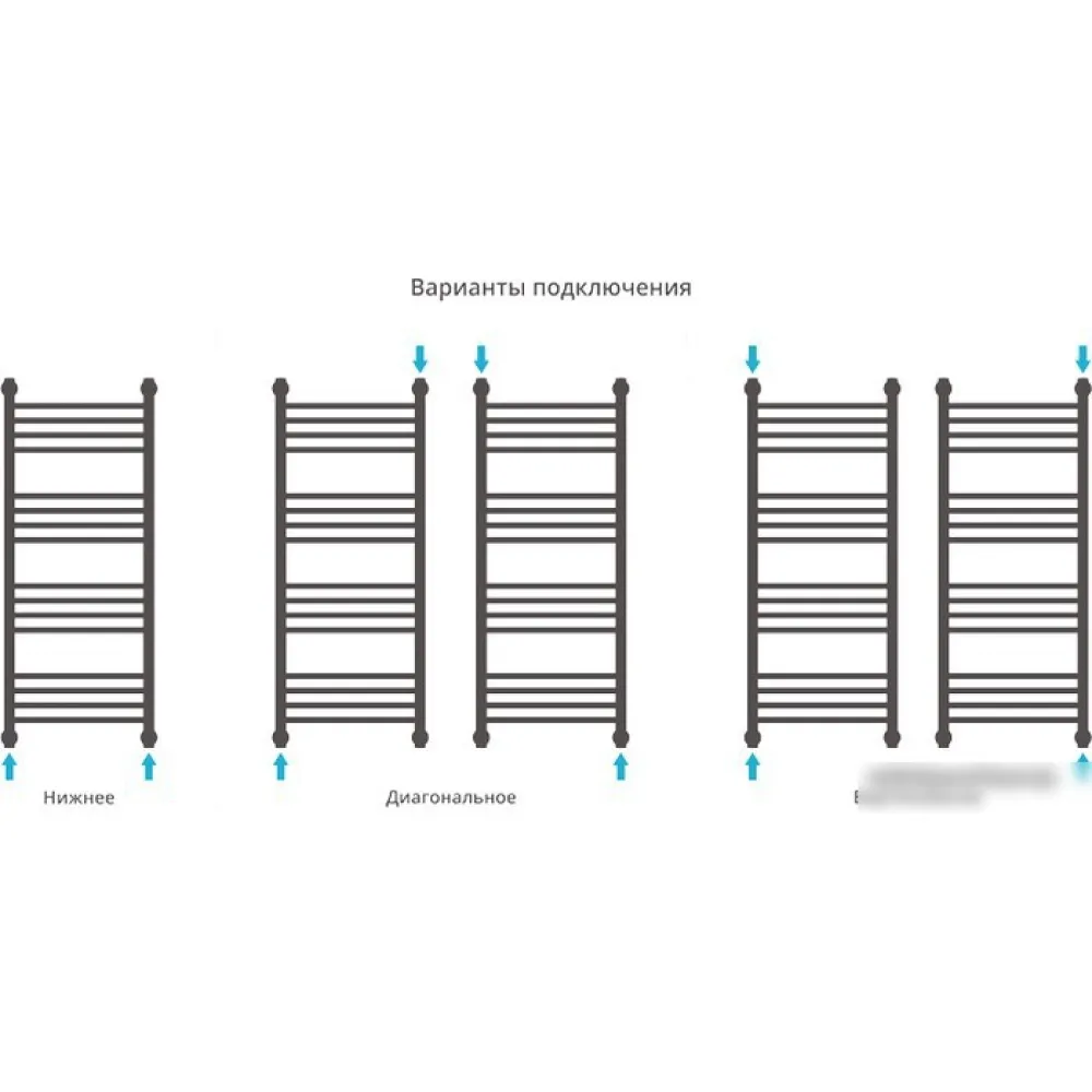 водяной, "лесенка", нержавеющая сталь, подключение боковое/нижнее/диагональное (400 мм, 1/2"), 106.2x45 см, цвет: полированная сталь