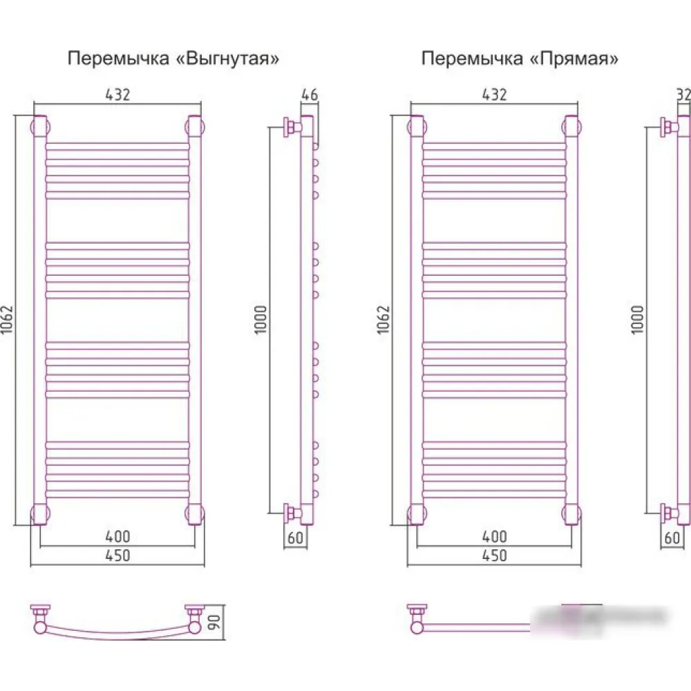 водяной, "лесенка", нержавеющая сталь, подключение нижнее/диагональное, 106.2x45 см, цвет: полированная сталь