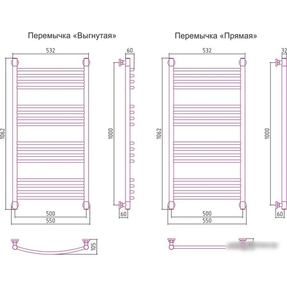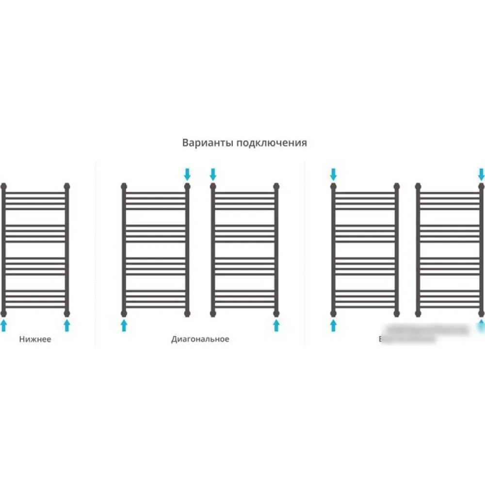 Тип: водяной , Форма: лесенка , Материал: нержавеющая сталь , Подключение: нижнее, диагональное , Посадочное (межосевое) расстояние: 500 мм, Посадочный диаметр: 3/4, 1/2 ", Высота: 106.2 см, Ширина: 55 см, Цвет: полированная сталь