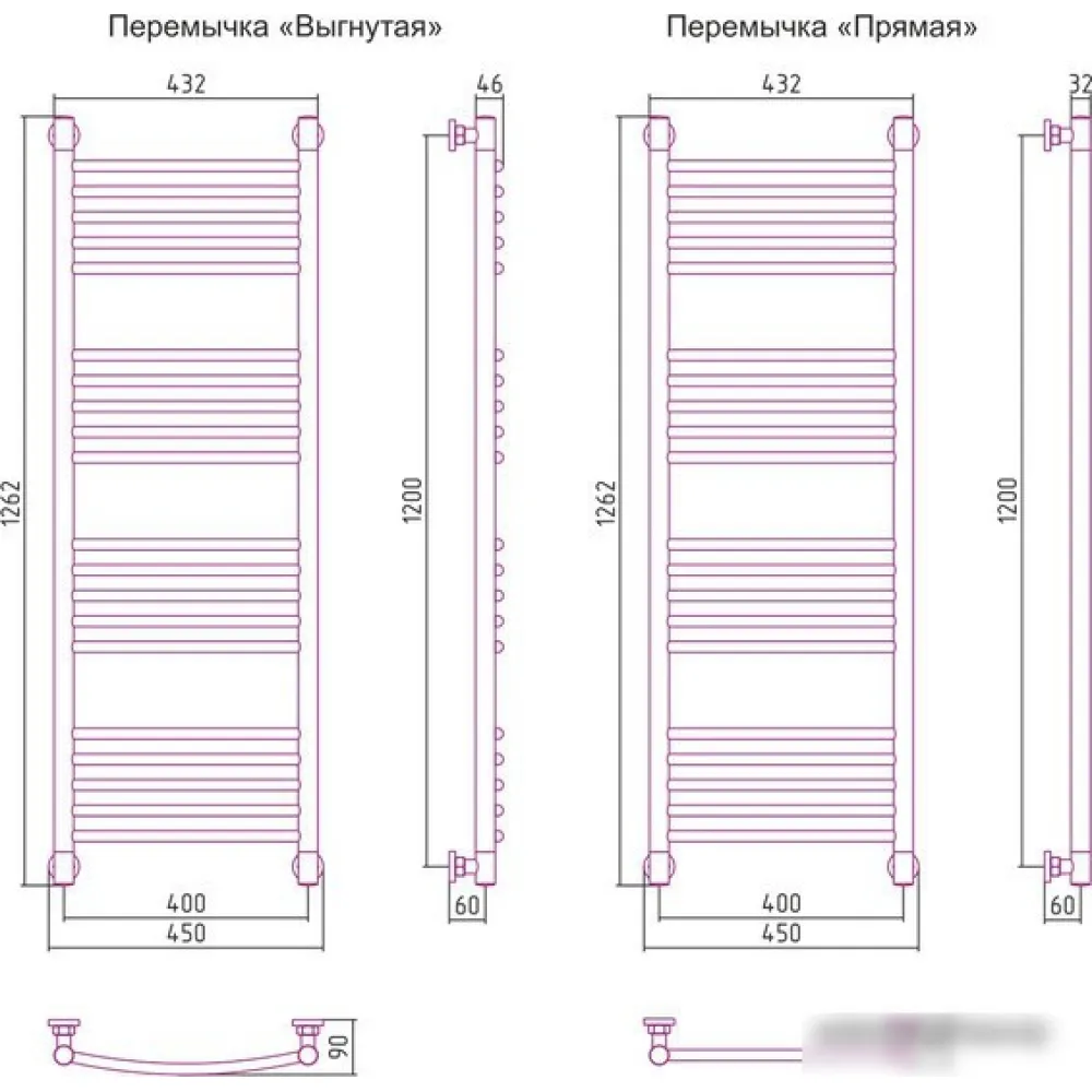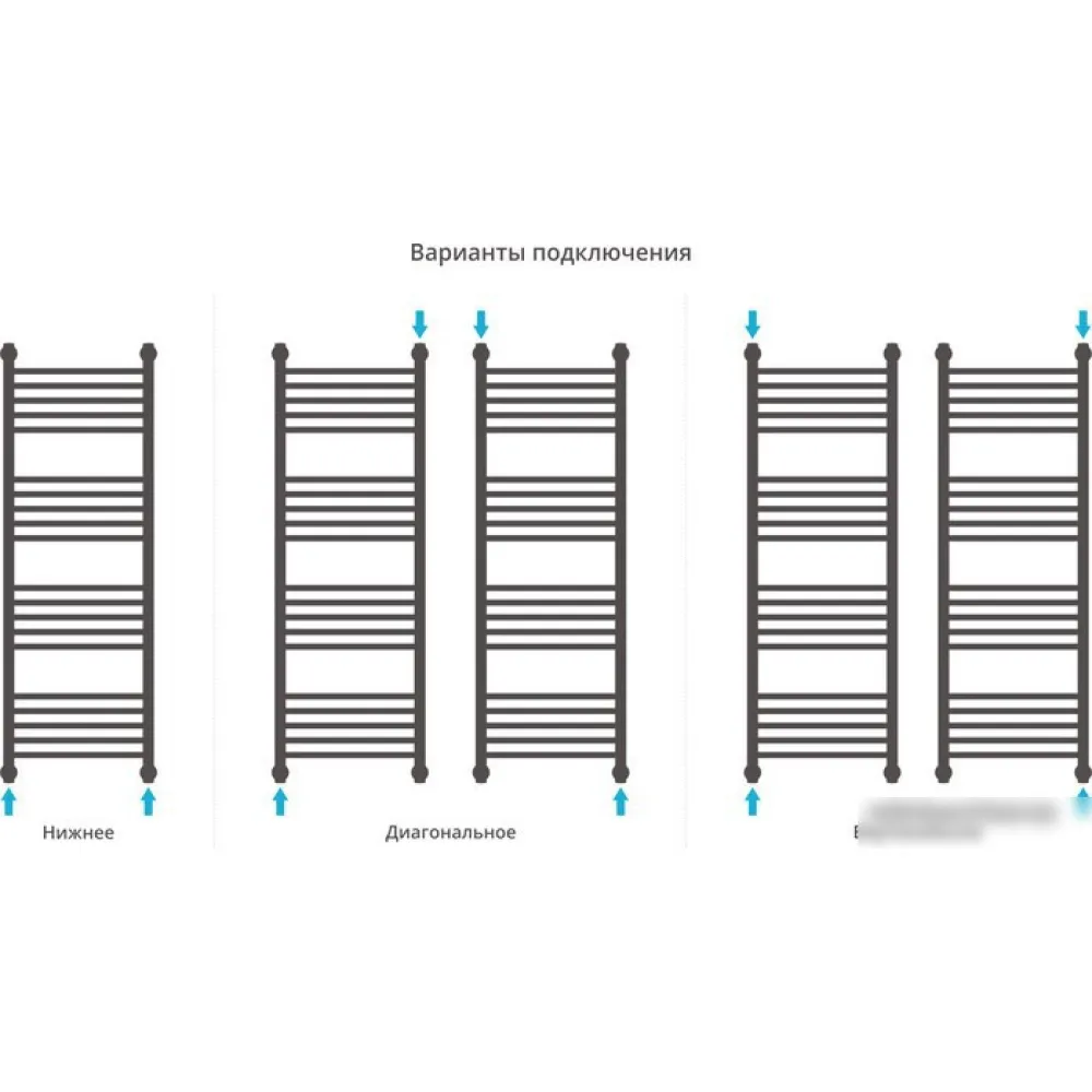 водяной, "лесенка", нержавеющая сталь, подключение нижнее/диагональное, 126.2x45 см, цвет: полированная сталь