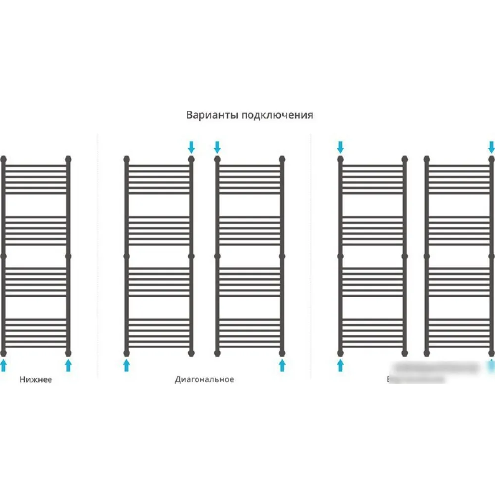 водяной, "лесенка", нержавеющая сталь, подключение нижнее/диагональное, 156.2x55 см, цвет: полированная сталь