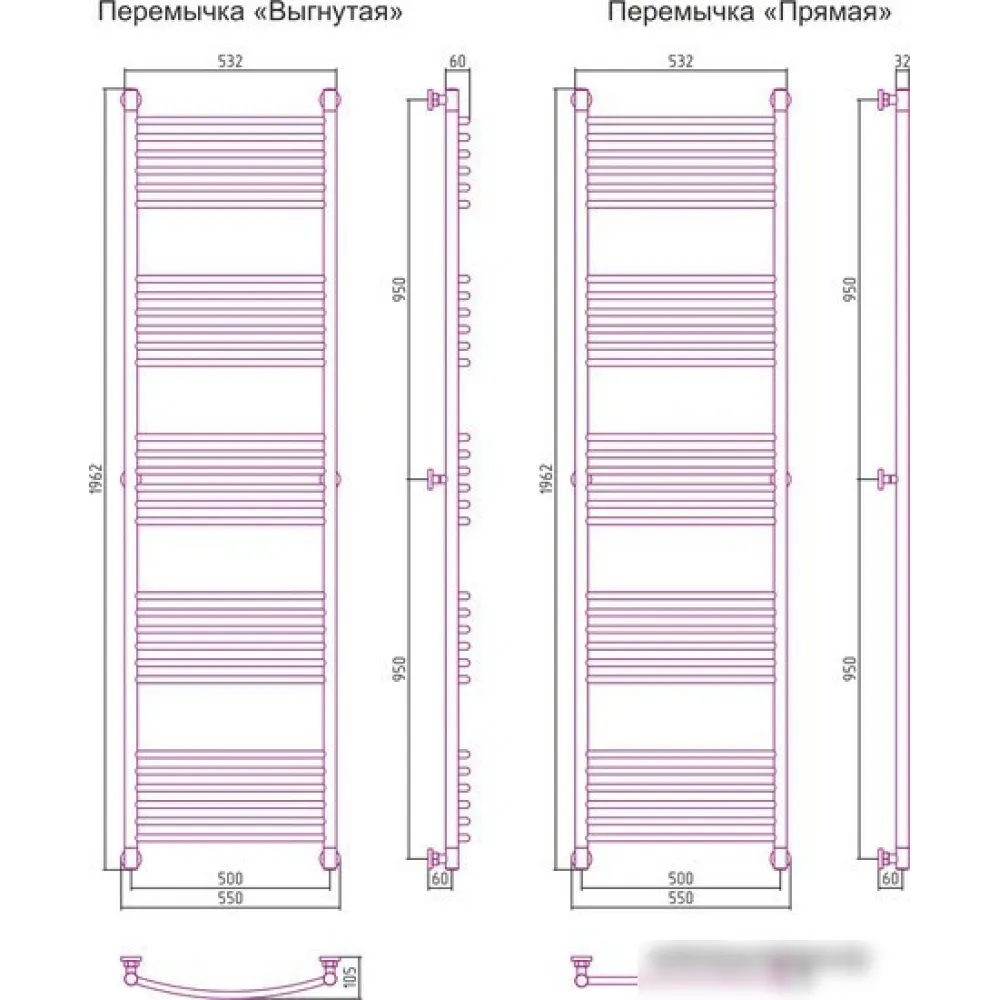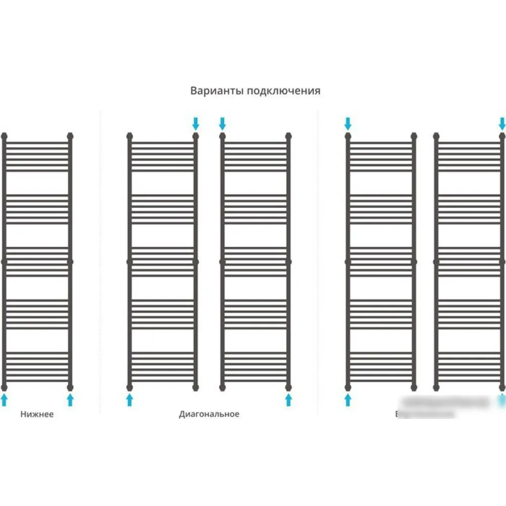 Тип: водяной , Форма: лесенка , Материал: нержавеющая сталь , Подключение: нижнее, диагональное , Посадочное (межосевое) расстояние: 500 мм, Посадочный диаметр: 3/4, 1/2 ", Высота: 196.2 см, Ширина: 55 см, Цвет: полированная сталь