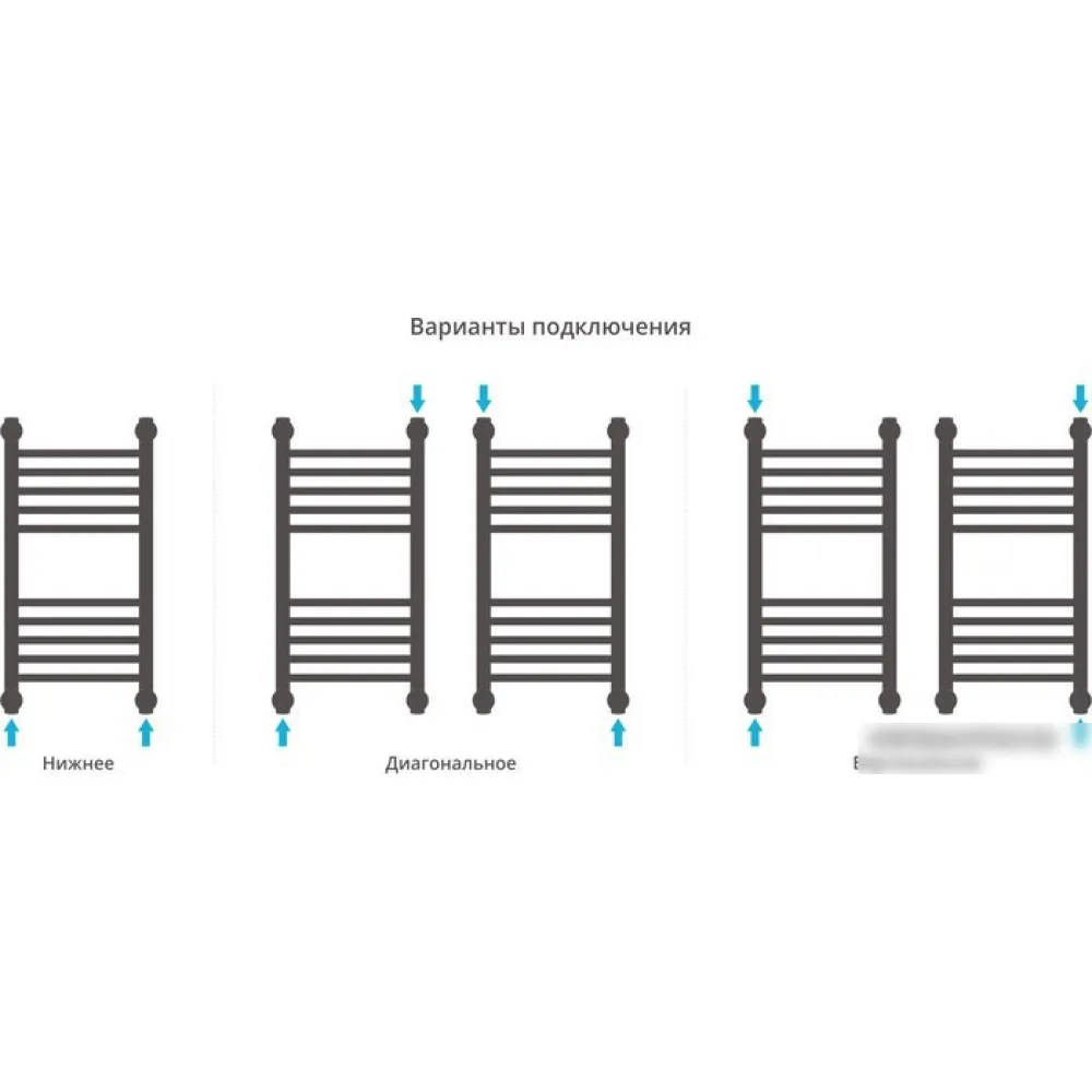 водяной, "лесенка", нержавеющая сталь, подключение нижнее/диагональное, 66.2x35 см, цвет: полированная сталь