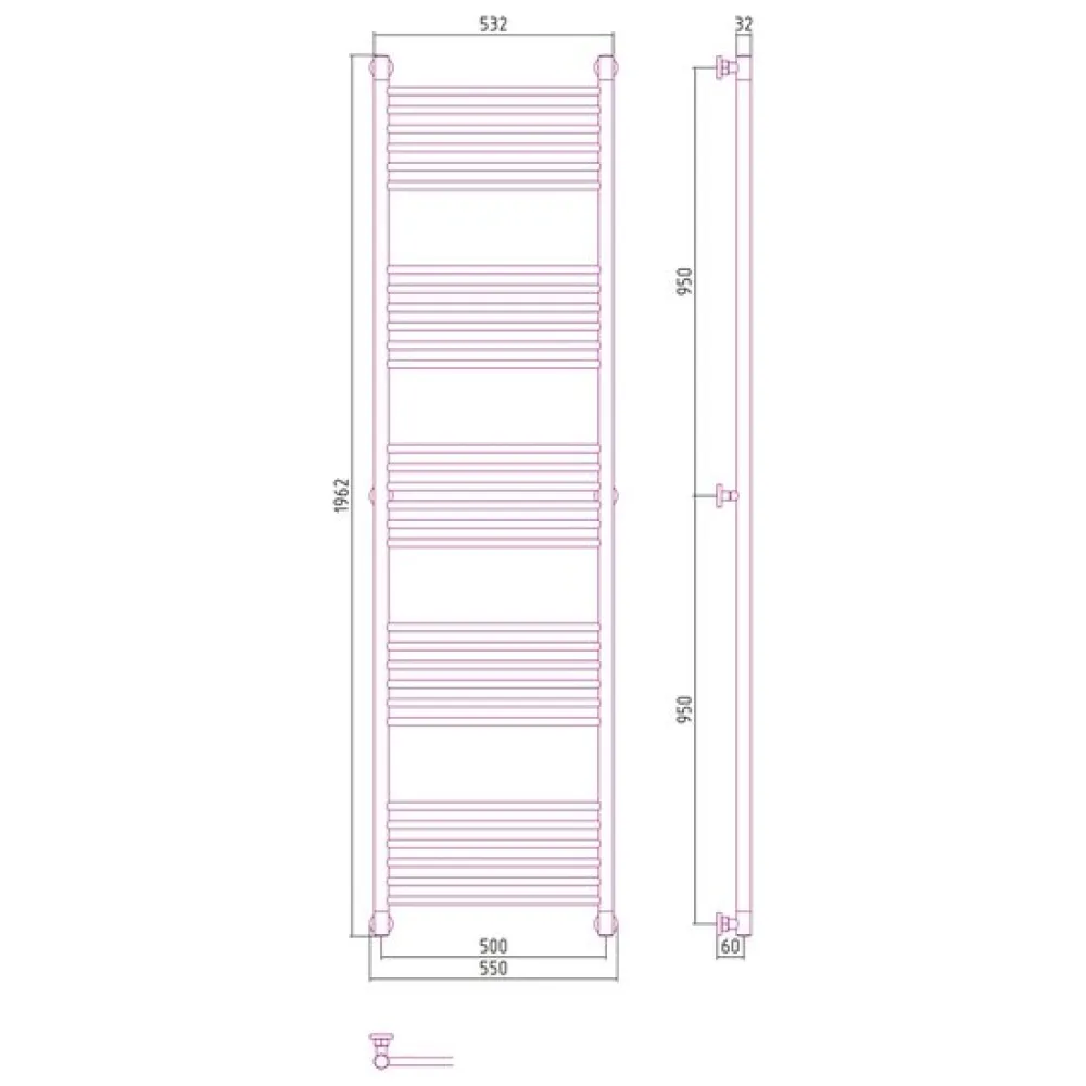 | Информация | межосевое расстояние при вертикальном подключении 1900 мм; межосевое расстояние при диагональном подключении 1900 мм в параметрах указано межосевое расстояние при нижнем подключении |