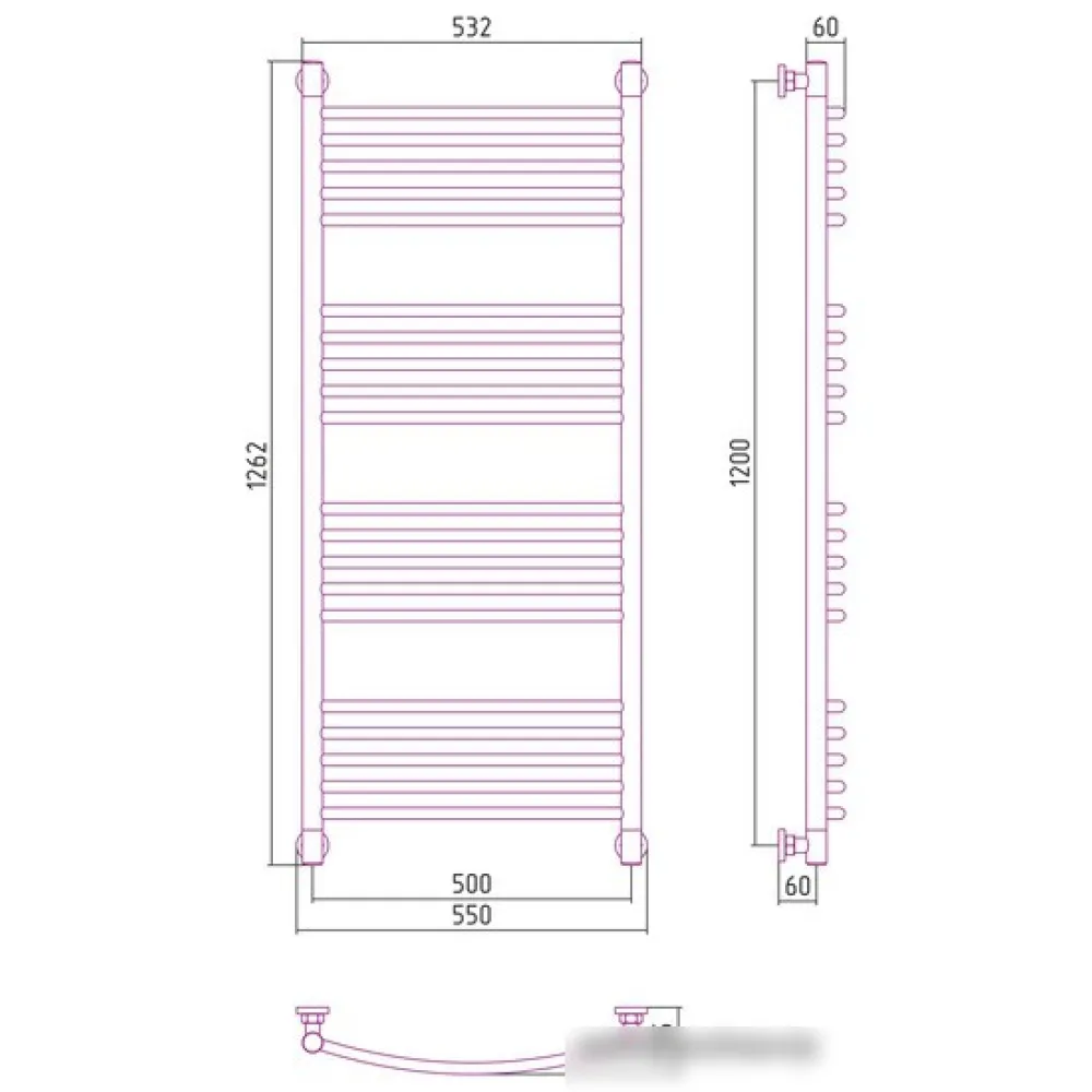 | Информация | межосевое расстояние при вертикальном подключении 1200 мм; межосевое расстояние при диагональном подключении 1200 мм в параметрах указано межосевое расстояние при нижнем подключении |