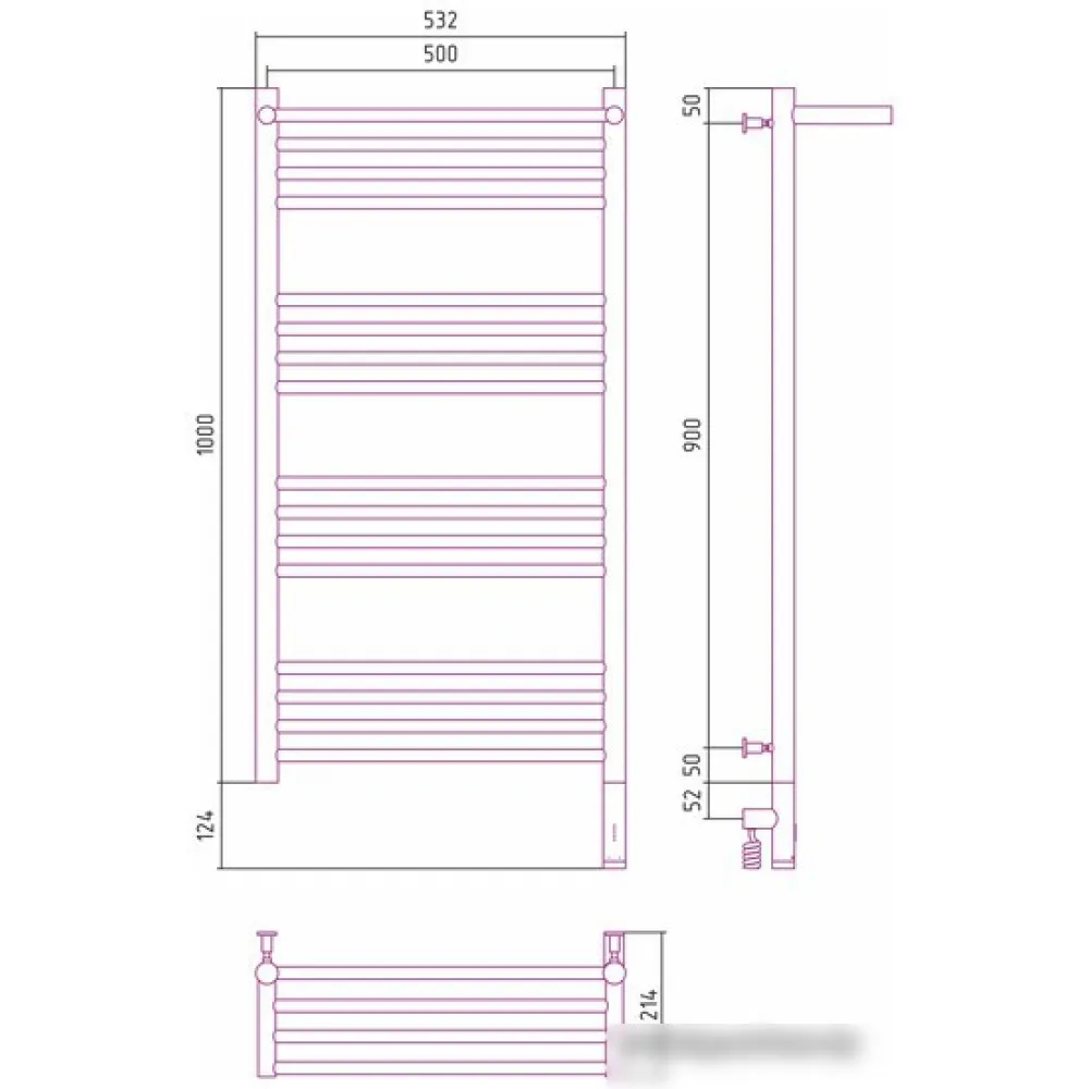 Полотенцесушитель Сунержа Богема с полкой 3.0 1000х500 МЭМ правый 00-5807-1050