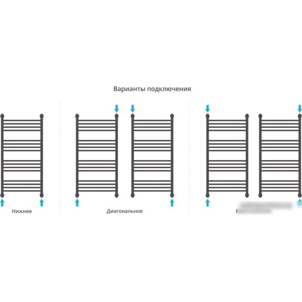 водяной, "лесенка", нержавеющая сталь, подключение нижнее/диагональное, 106.2x55 см, цвет: полированная сталь