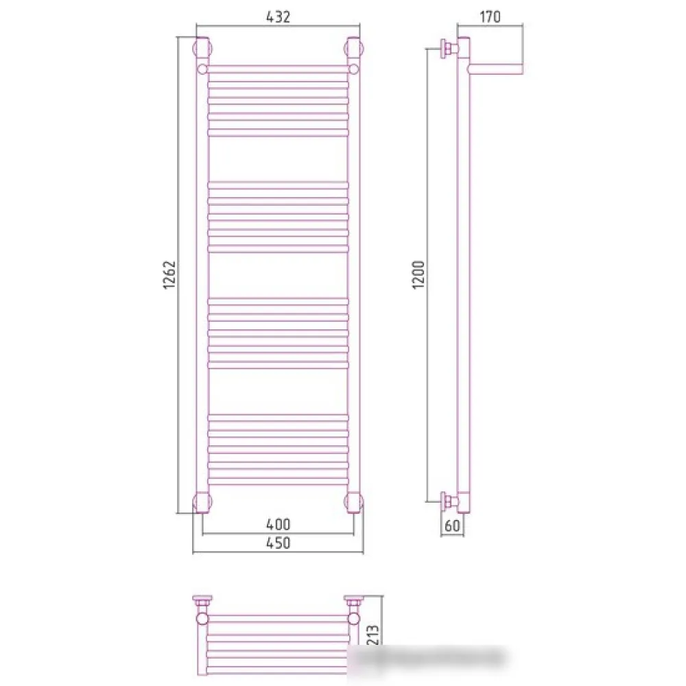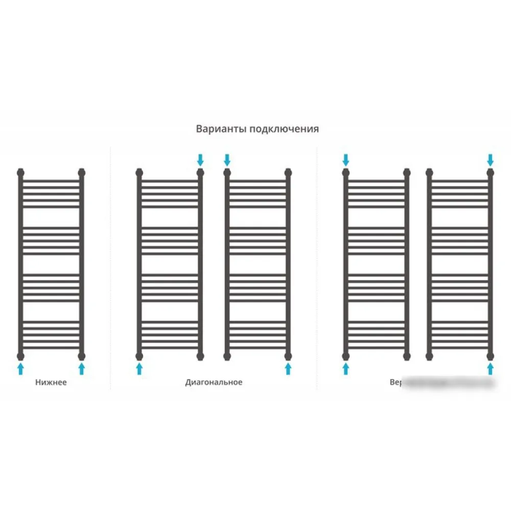 Тип: водяной , Форма: лесенка , Материал: нержавеющая сталь , Подключение: нижнее, боковое, диагональное , Посадочное (межосевое) расстояние: 400 мм, Посадочный диаметр: 3/4, 1/2 ", Высота: 126.2 см, Ширина: 45 см, Цвет: черный