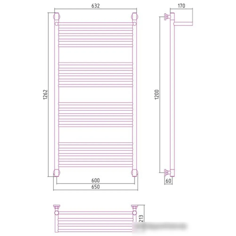 Тип: водяной , Форма: лесенка , Материал: нержавеющая сталь , Подключение: нижнее, боковое, диагональное , Посадочное (межосевое) расстояние: 600 мм, Посадочный диаметр: 3/4, 1/2 ", Высота: 126.2 см, Ширина: 65 см, Цвет: золотистый