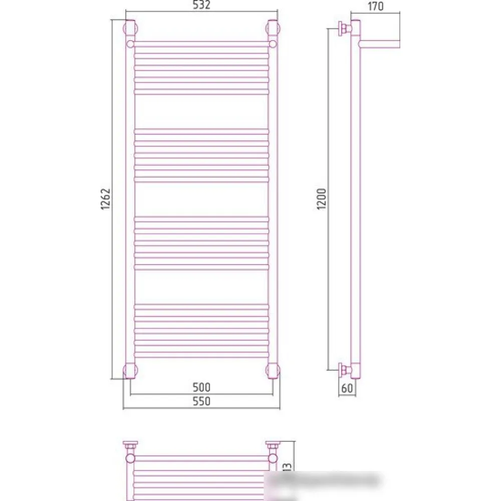 водяной, "лесенка", нержавеющая сталь, подключение нижнее/диагональное, 126.2x55 см, цвет: полированная сталь
