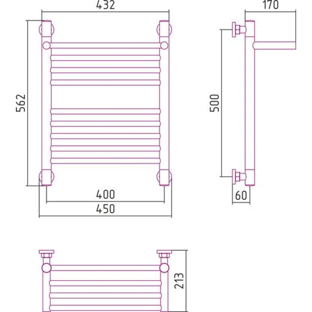 водяной, "лесенка", нержавеющая сталь, подключение нижнее/диагональное, 56.2x45 см, цвет: полированная сталь