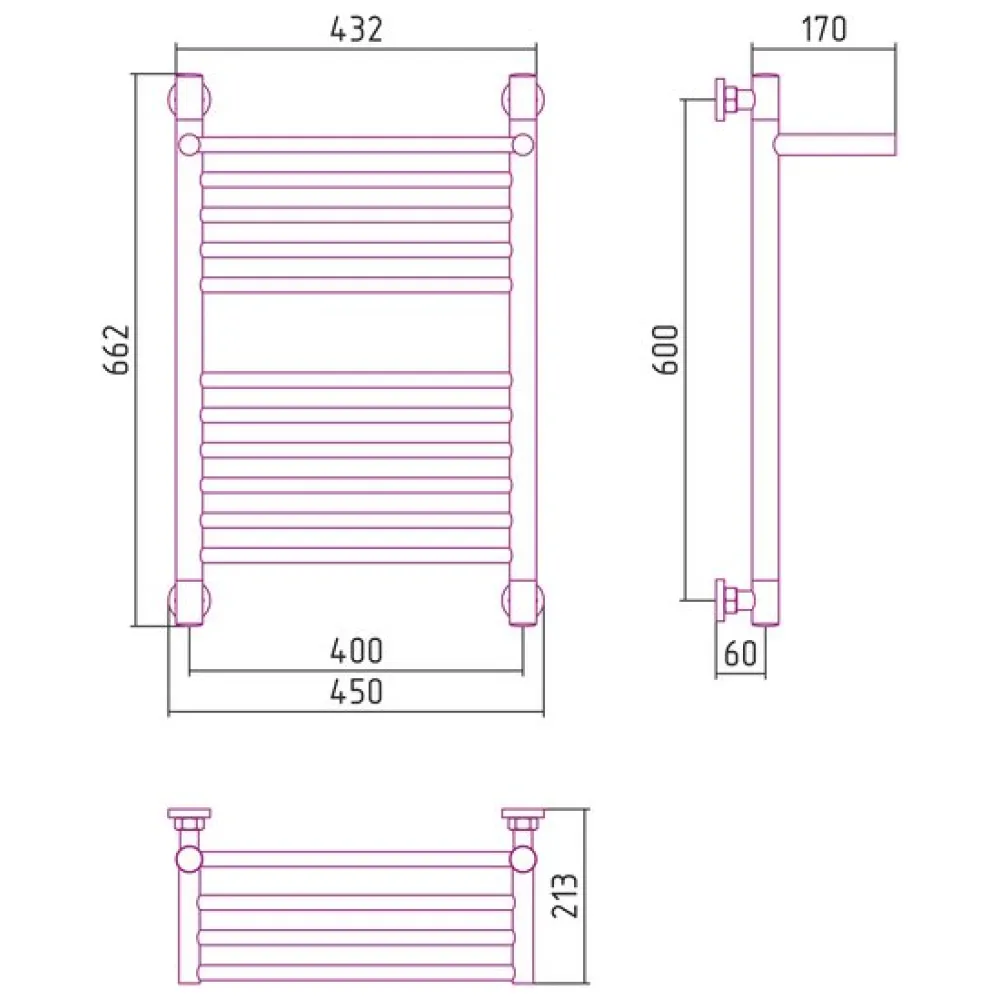 | Информация | межосевое расстояние при вертикальном подключении 600 мм; межосевое расстояние при диагональном подключении 600 мм в параметрах указано межосевое расстояние при нижнем подключении |