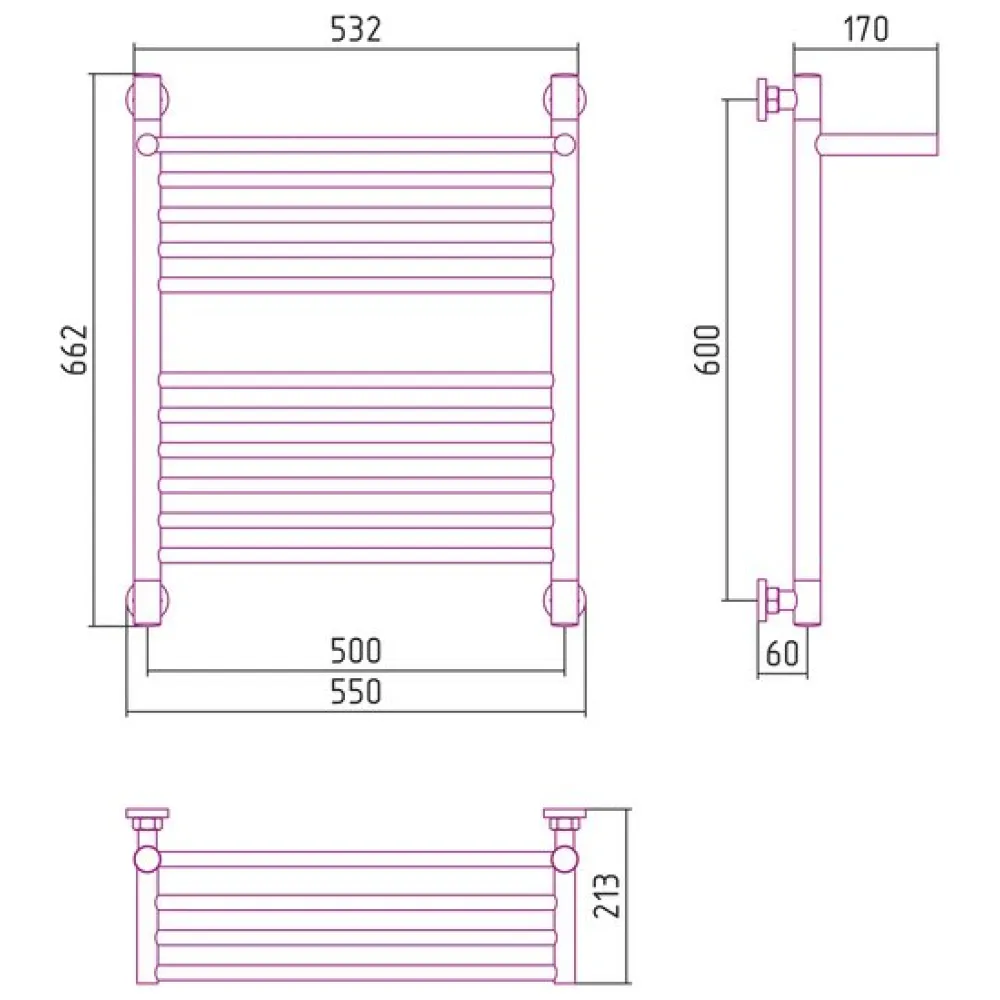Полотенцесушитель Сунержа Богема с полкой+ 600х500 03-0223-6050