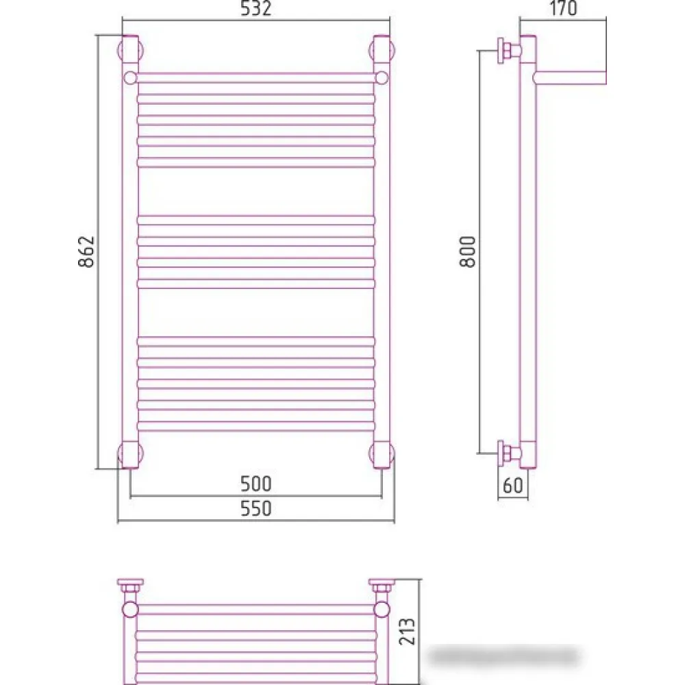 водяной, "лесенка", нержавеющая сталь, подключение нижнее/диагональное, 86.2x55 см, цвет: полированная сталь