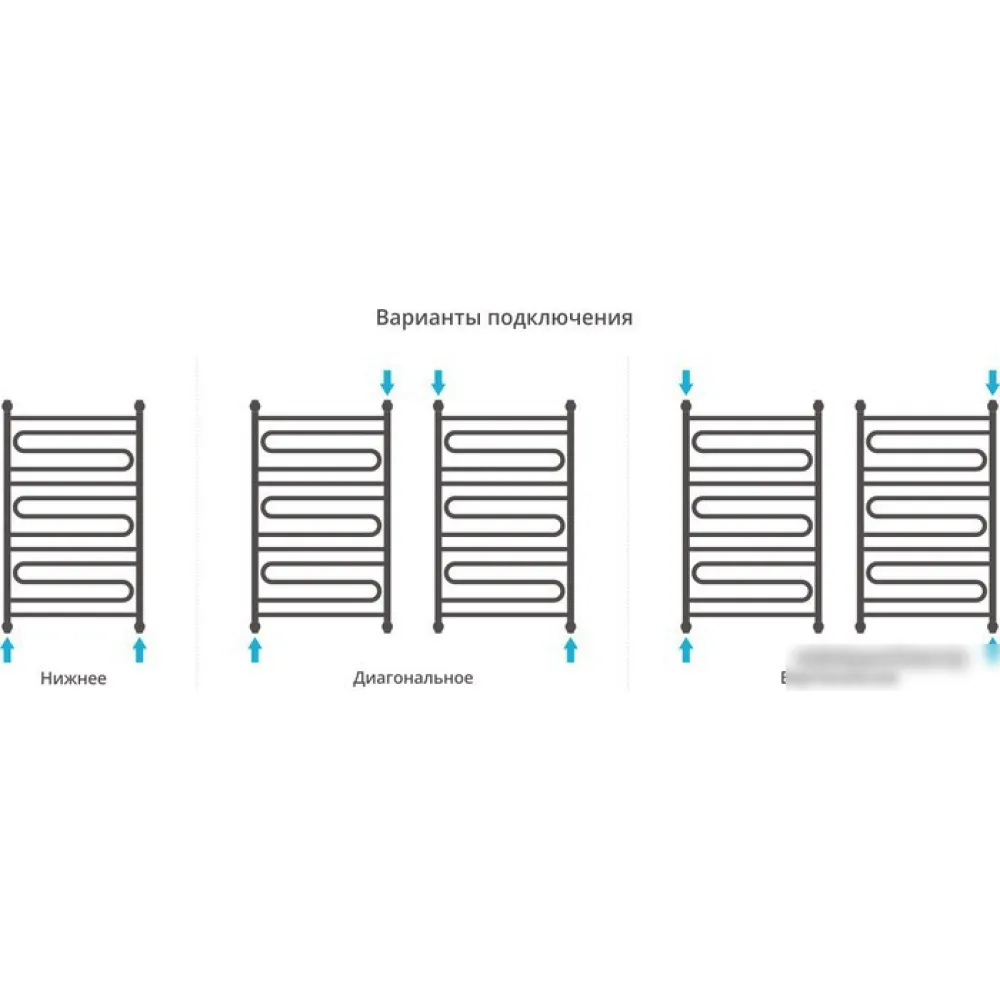 водяной, "лесенка", нержавеющая сталь, подключение нижнее/диагональное, 106.2x65 см, цвет: полированная сталь