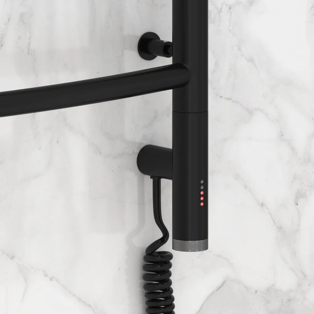 электрический, "лесенка", нержавеющая сталь, подключение боковое, таймер, терморегулятор, 92.4x53.2 см, цвет: черный