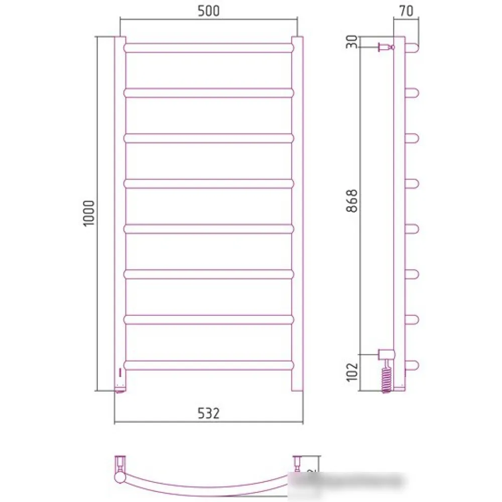 Полотенцесушитель Сунержа Галант 4.0 1000х500 МЭМ левый 30-0830-1050