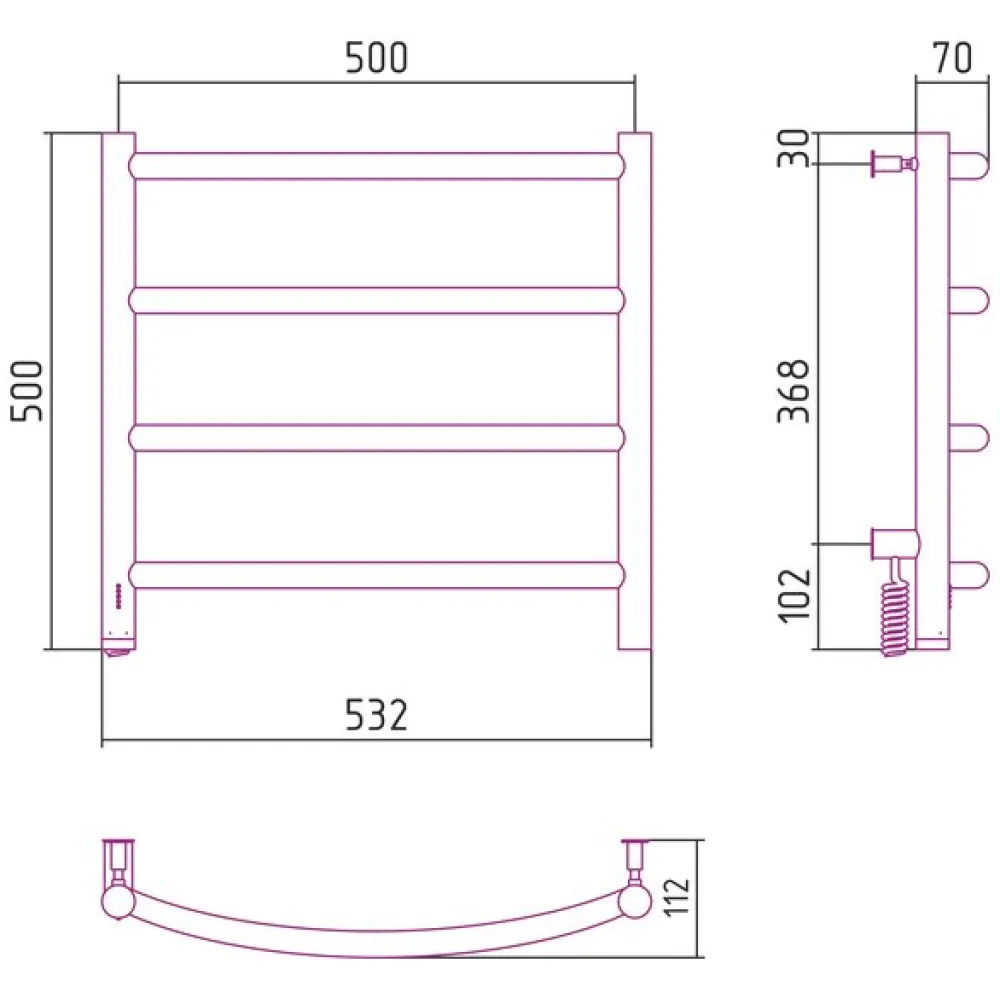 Полотенцесушитель Сунержа Галант 4.0 500х500 МЭМ левый 00-0830-5050