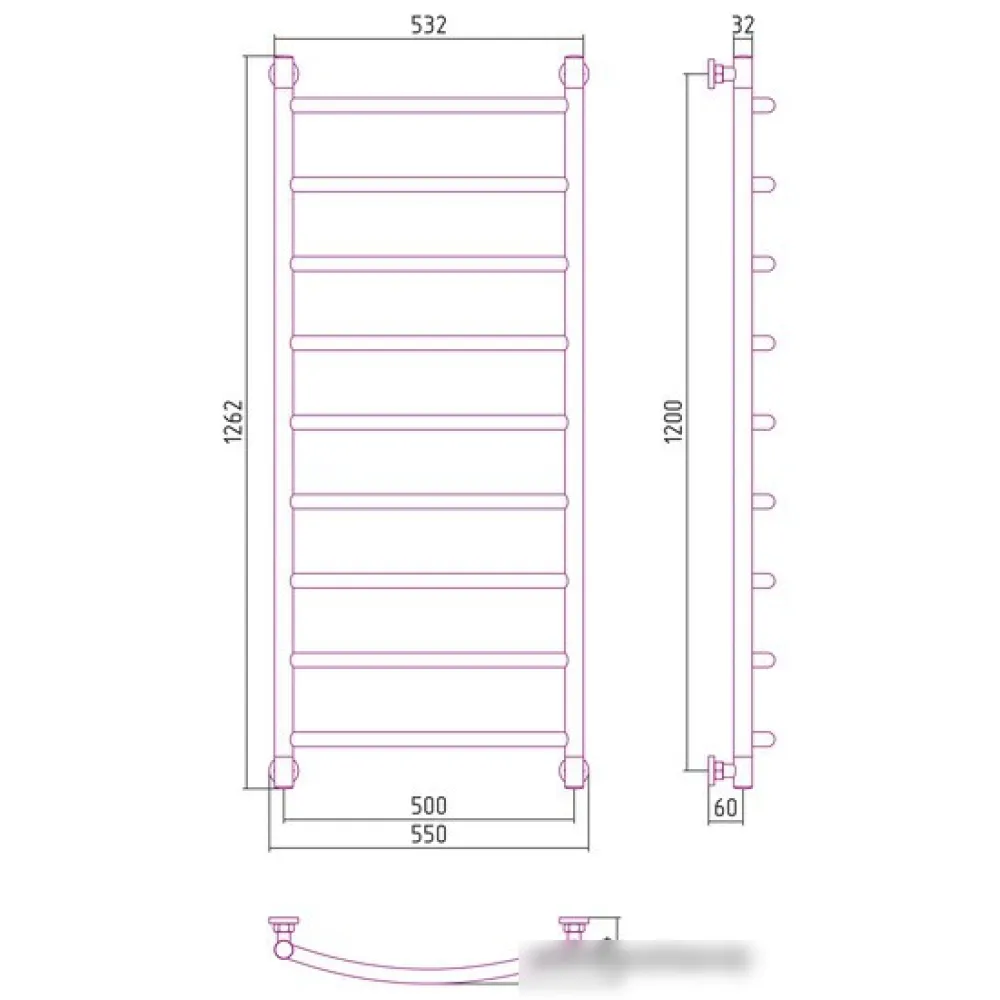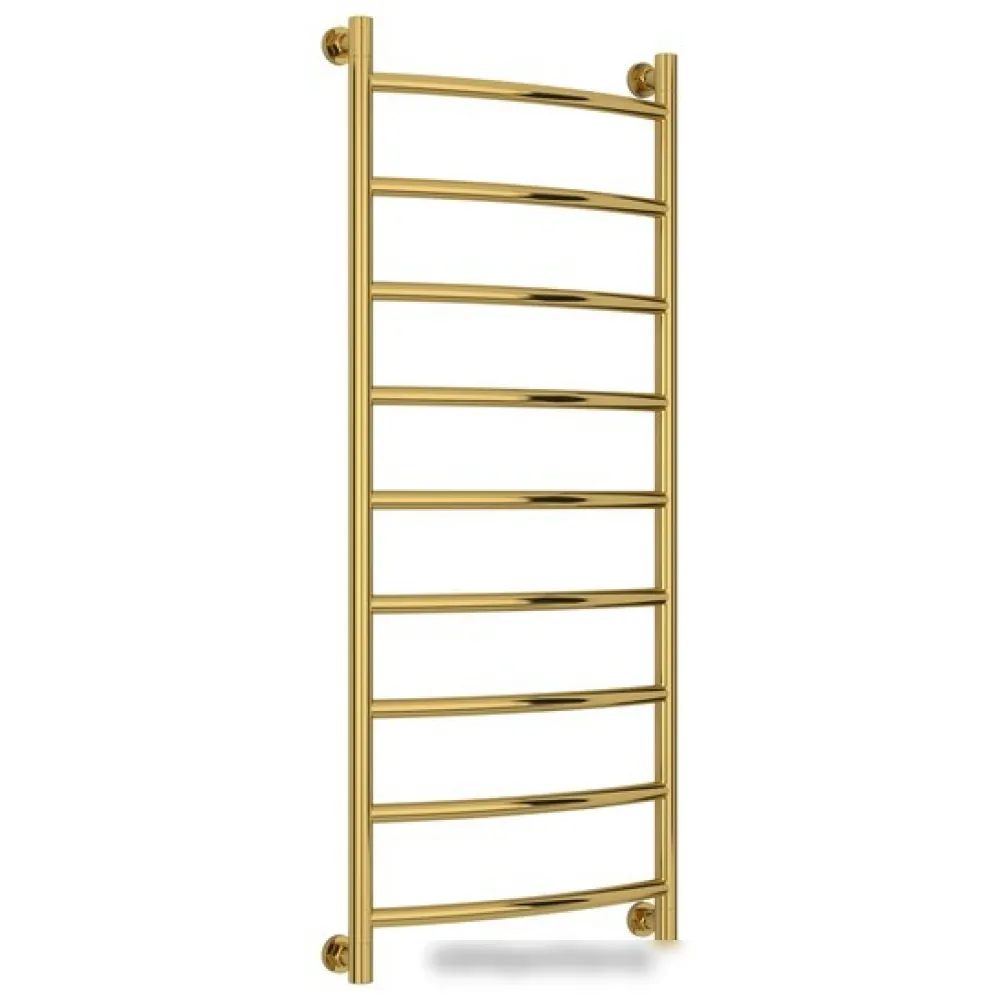 Тип: водяной , Форма: лесенка , Материал: нержавеющая сталь , Подключение: нижнее, боковое, диагональное , Посадочное (межосевое) расстояние: 500 мм, Посадочный диаметр: 3/4, 1/2 ", Высота: 126.2 см, Ширина: 55 см, Цвет: золотистый , Количество ребер: 9 шт.