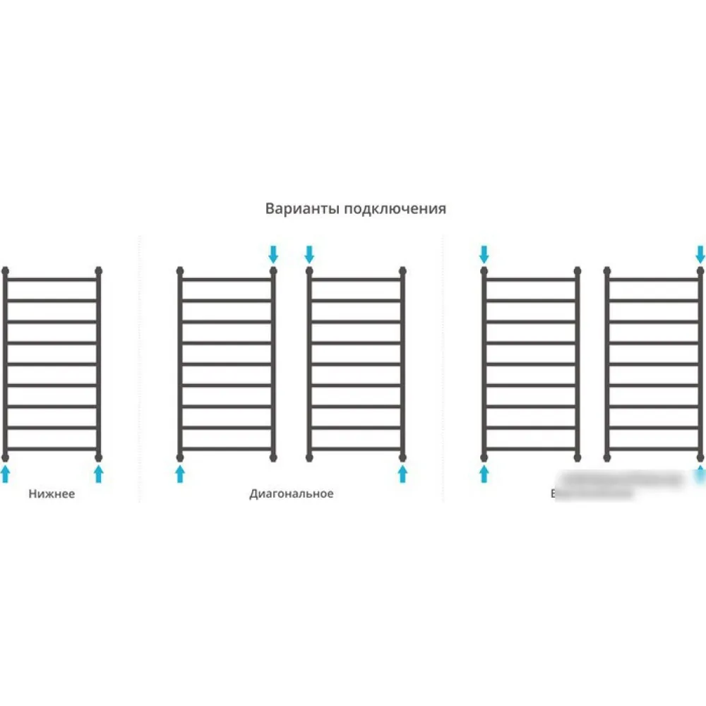 водяной, "лесенка", нержавеющая сталь, подключение диагональное, 126.2x65 см, цвет: полированная сталь