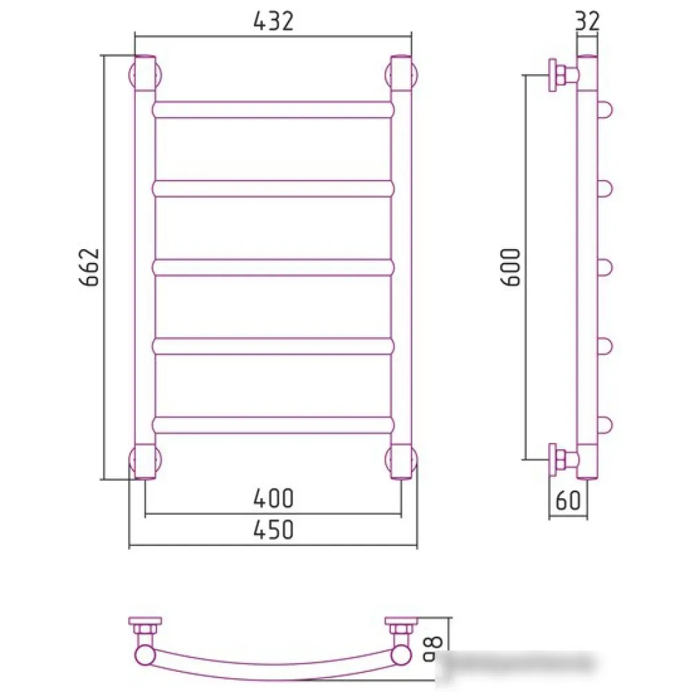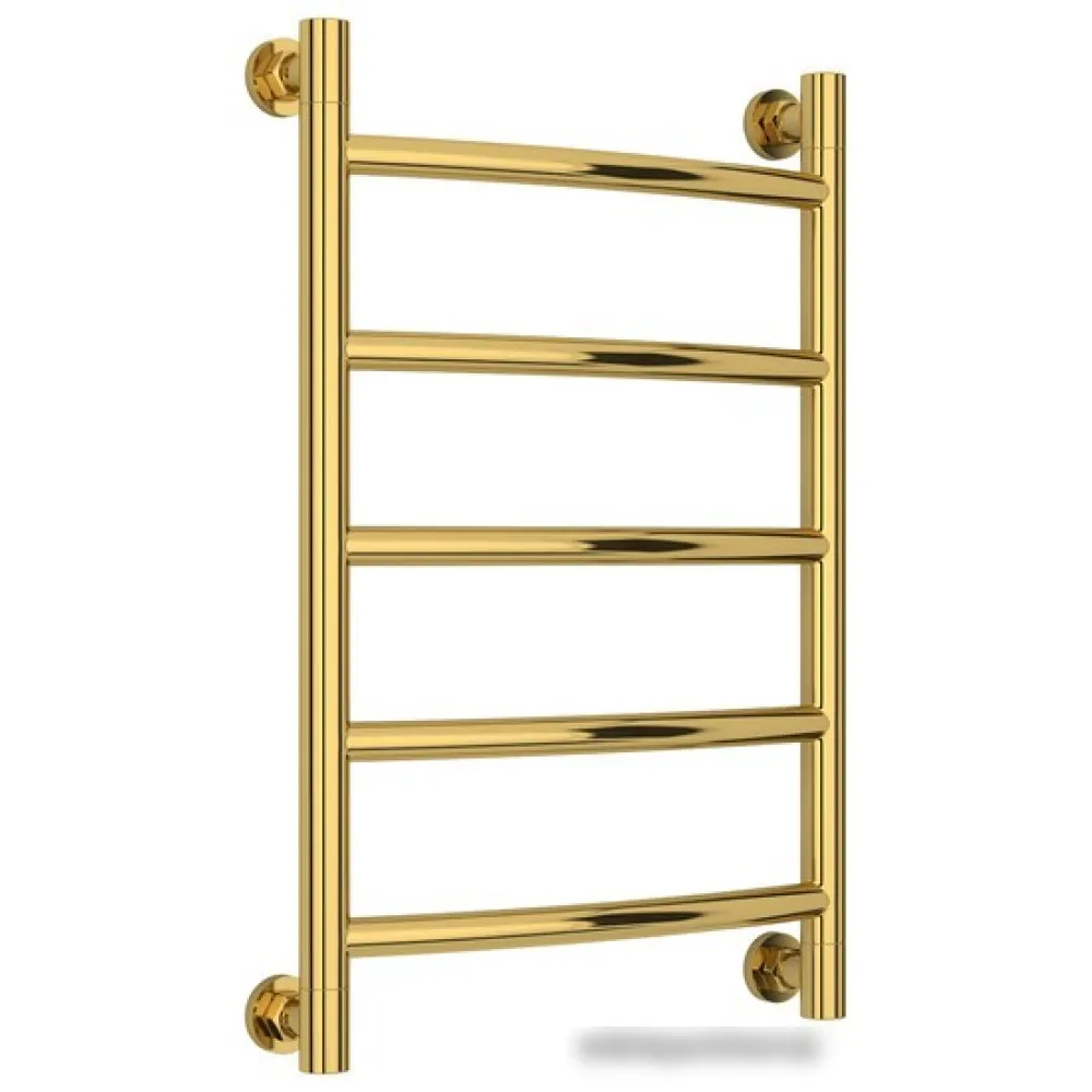 Тип: водяной , Форма: лесенка , Материал: нержавеющая сталь , Подключение: нижнее, боковое, диагональное , Посадочное (межосевое) расстояние: 400 мм, Посадочный диаметр: 3/4, 1/2 ", Высота: 66.2 см, Ширина: 45 см, Цвет: золотистый , Количество ребер: 5 шт., Ребра: выгнутые