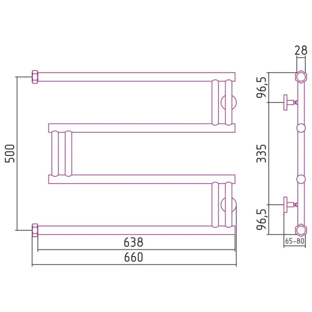 Полотенцесушитель Сунержа High-Tech model "M+" 1" 500х650 боковое подключение 03-4050-5065