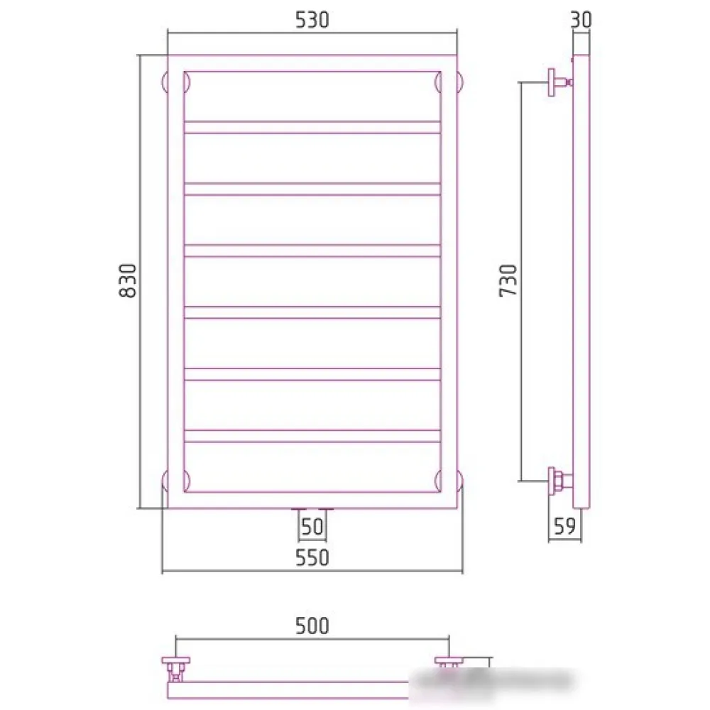 | Информация | Водяные полотенцесушители Канцлер производятся из пищевой нержавеющей стали марки AISI 304 L. Усилены полимером, с широчайшими возможностями по подводу воды, а дополнительные вентиля и наборы делают этот полотенцесушитель отличным решением для любой ванной комнаты. Доставка по России - бесплатно. Гарантия - 10 лет. Межосевое расстояние: -- нижнее подключение X (мм) 500 Внешние габариты (высота х ширина х глубина) (мм) 800 x 550 x 75 Подключение Нижнее Материал Нержавеющая сталь AISI 304 L (04X18H10) Площадь помещения (м-) 4.3 Объем помещения (м-) 10.9 Теплоотдача (Qвт) 438 Рабочее давление от 3 до 15 атм Давление испытаний 60 атм Температура теплоносителя до 105°С Объем (м-) 0,036 Дизайн-радиатор с применением технологии «ПолимерПротект». |