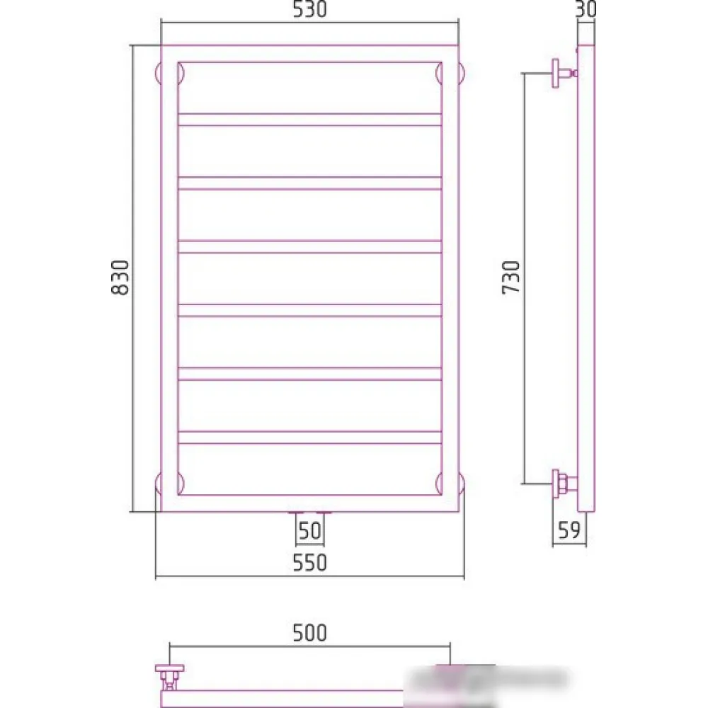 водяной, "лесенка", нержавеющая сталь, подключение нижнее, 83x55 см, цвет: полированная сталь