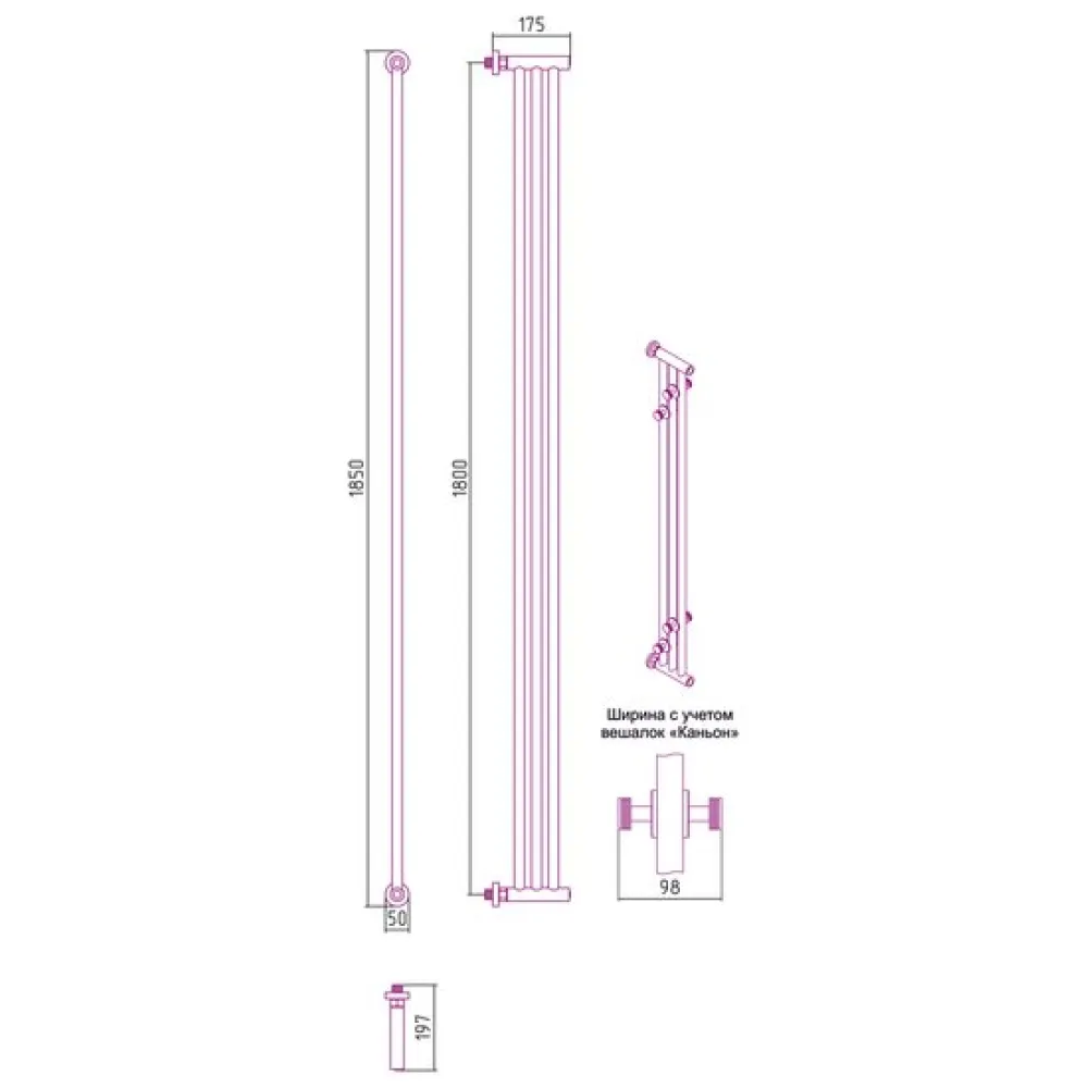 водяной, вертикальный, нержавеющая сталь, подключение боковое, 185x9.8 см, цвет: белый