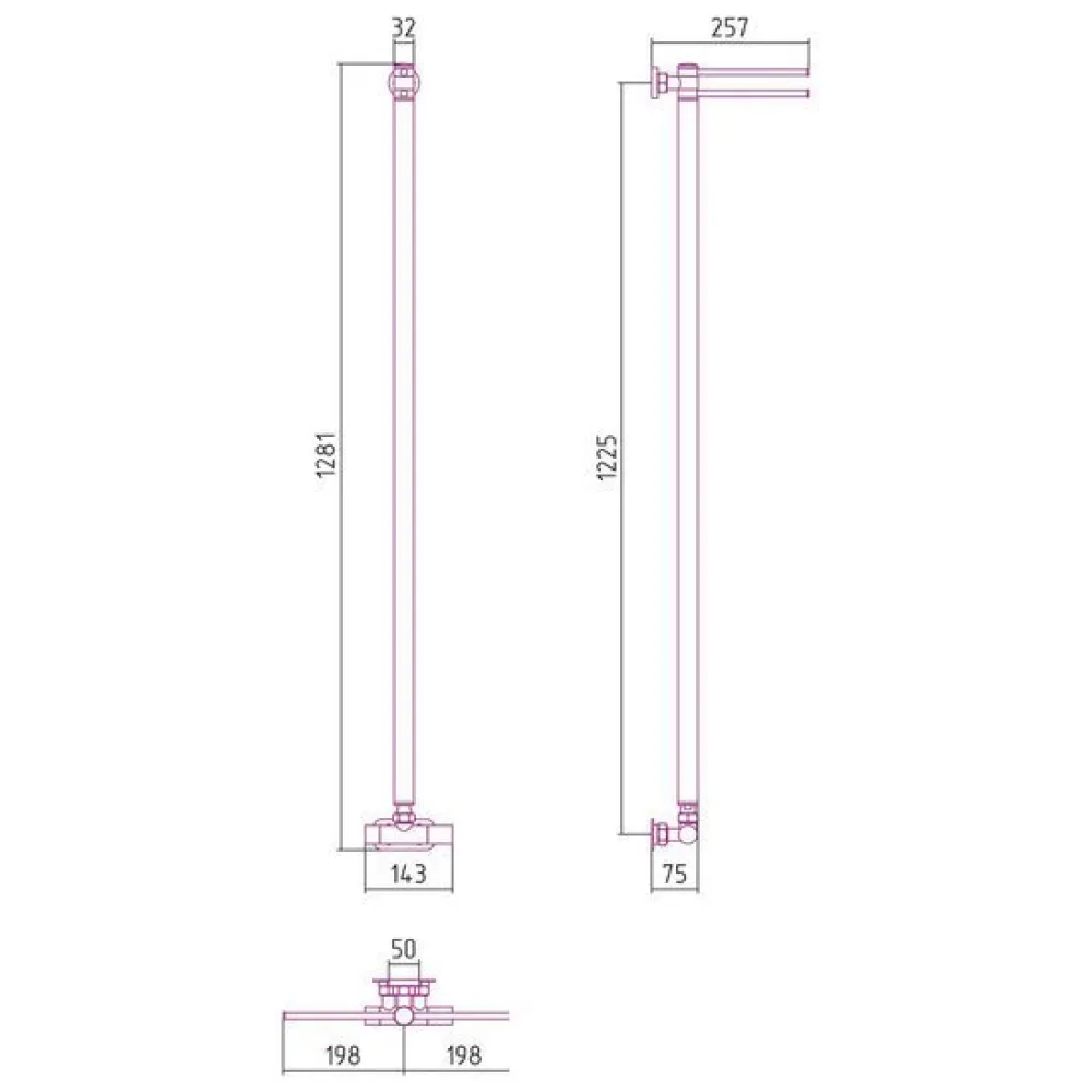 Тип: водяной , Форма: вертикальный , Материал: нержавеющая сталь , Подключение: нижнее , Посадочное (межосевое) расстояние: 50 мм, Посадочный диаметр: 3/4, 1/2 ", Высота: 128.1 см, Ширина: 14.3 см, Цвет: черный